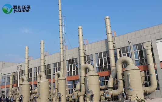 立式洗滌塔,有害的廢氣從塔體的下部進入,立式洗滌塔內部設有一定高度的填料層廢氣自下而上穿過填料層,最后從塔頂排出。同時從塔體的上部設有噴淋系統(tǒng),利用清水作循環(huán)吸收液,循環(huán)水從塔體的上部的布水器噴淋至填料層潤濕填料表面形成流動的液膜。填料層內氣、液兩相呈逆流流動,氣液兩項在塔內逆流接觸,利用有害廢氣在吸收劑中的一定的溶解度,可溶的組分不斷溶入吸收液中,達到降低氣體中有害組分含量的目的。配添加適當量的藥劑,有害廢氣不斷被吸收或是被化學反應去除掉,因此在上升氣流中的濃度愈來愈低,到塔頂時達到吸收要求排出塔外。