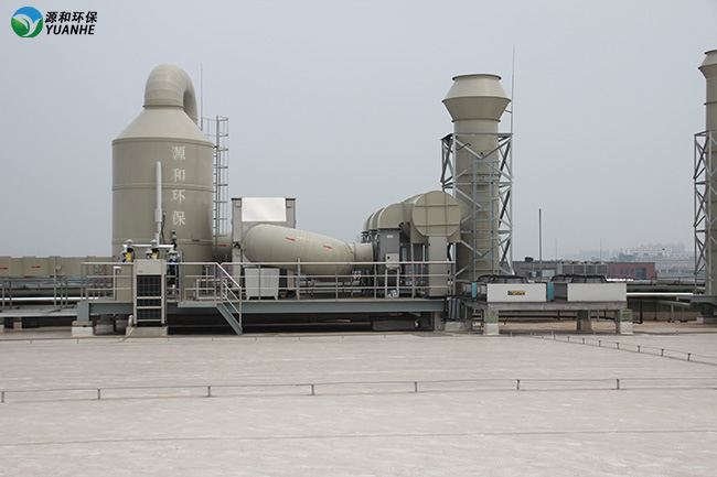 酸霧洗滌塔是利用氣體與液體間的接觸,將氣體中的污染物傳送到液體中,然后再將清潔氣體與被污染的液體分離,達(dá)到清凈空氣的目的。廢氣經(jīng)由填充式酸霧洗滌塔,采用氣液逆向吸收方式處理,即液體自塔頂向下以霧狀噴撒而下,廢氣則由塔體(逆向流)達(dá)到氣液接觸之目的。此處理方可冷卻廢氣、調(diào)理氣體及去除顆粒,再經(jīng)過除霧段處理后,排入大氣中。
